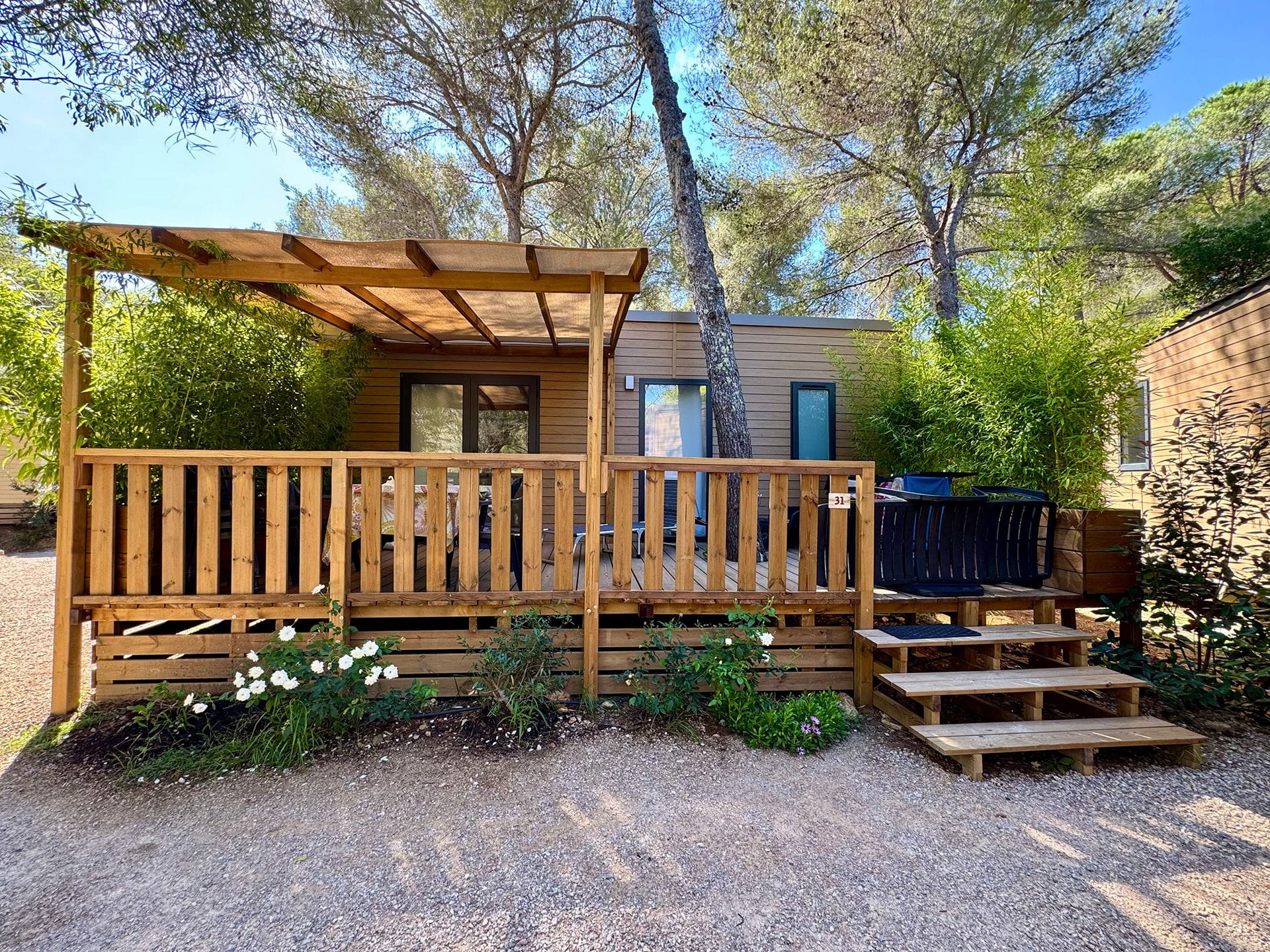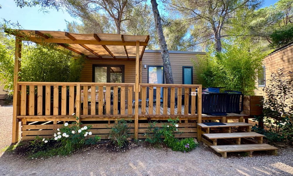 Offrez-vous une parenthèse de détente en Méditerranée dans notre Cottage 4-6 personnes. Avec ses 26 m² intelligemment agencés, cet hébergement combine praticité et confort pour des vacances réussies en famille ou entre amis. Son salon-cuisine, ouvert sur une grande terrasse en bois de 21 m², crée un espace convivial et lumineux où il fait bon partager chaque instant. À l’extérieur, la terrasse semi-couverte vous invite à savourer le soleil du Var, installé sur un transat en toute tranquillité.